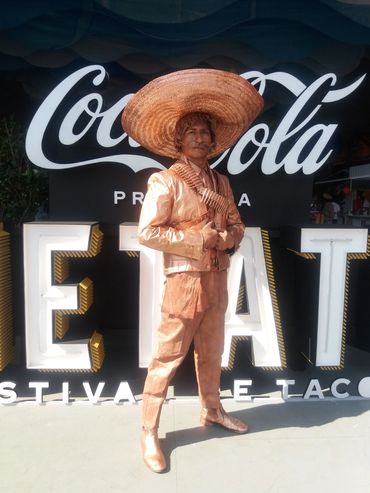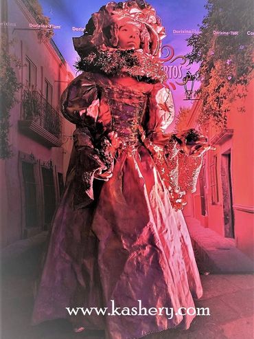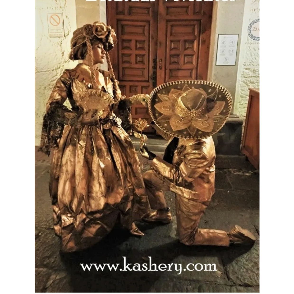 Realiza un performance con figuras distintas acrobáticas, moviéndose,caminando, corriendo, girando, saludando, reverenciando a los invitados